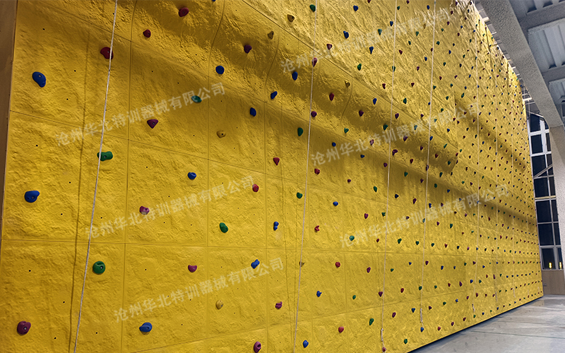 此類攀巖墻采用玻璃鋼樹脂復(fù)合材料制成,不含任何對(duì)人體有害的化學(xué)成分,每塊巖板0.9×0.9米,由各種不同造型的攀巖板拼接成造型豐富的整體墻面。 …